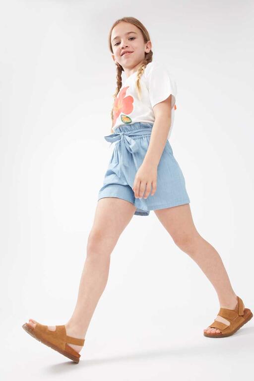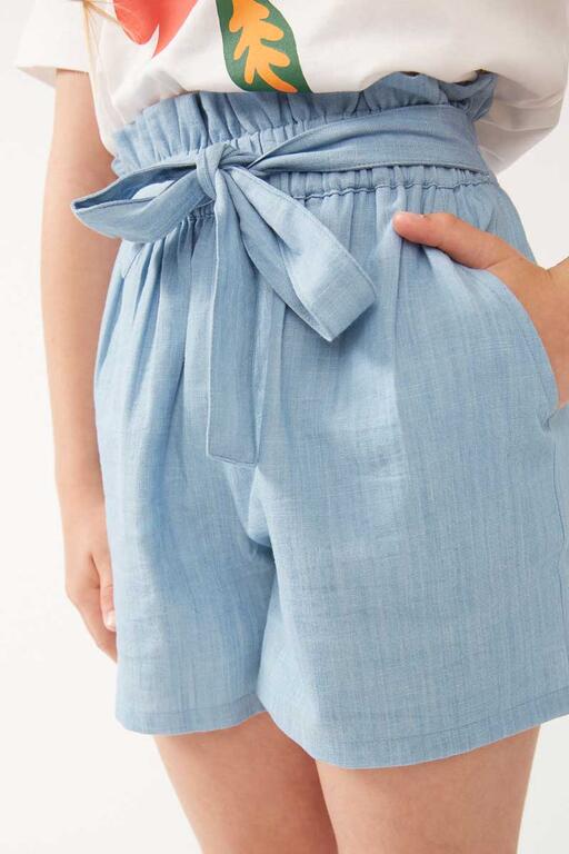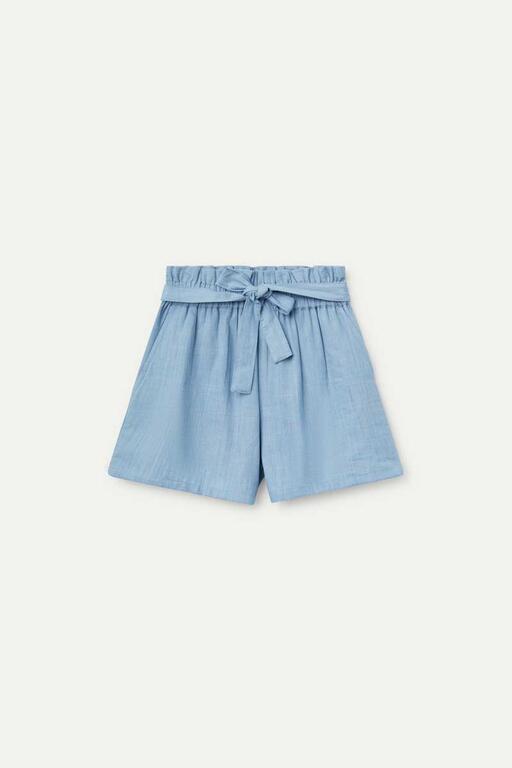 Calção tecido cambraia com efeito jeans azul, para criar um super descontraído e giro!