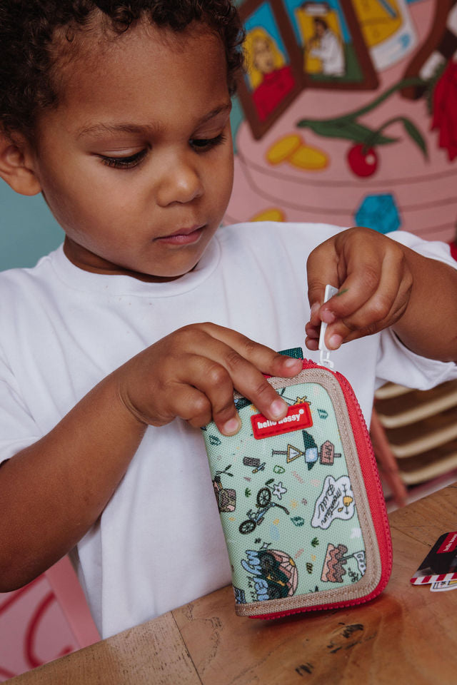Os pequenos adoram as cores e os padrões da Carteira Mountain Ride para crianças, além de combinar perfeitamente com nossas malas e bonés com o mesmo nome. Uma ótima ideia de presente para crianças. A primeira carteira deles!