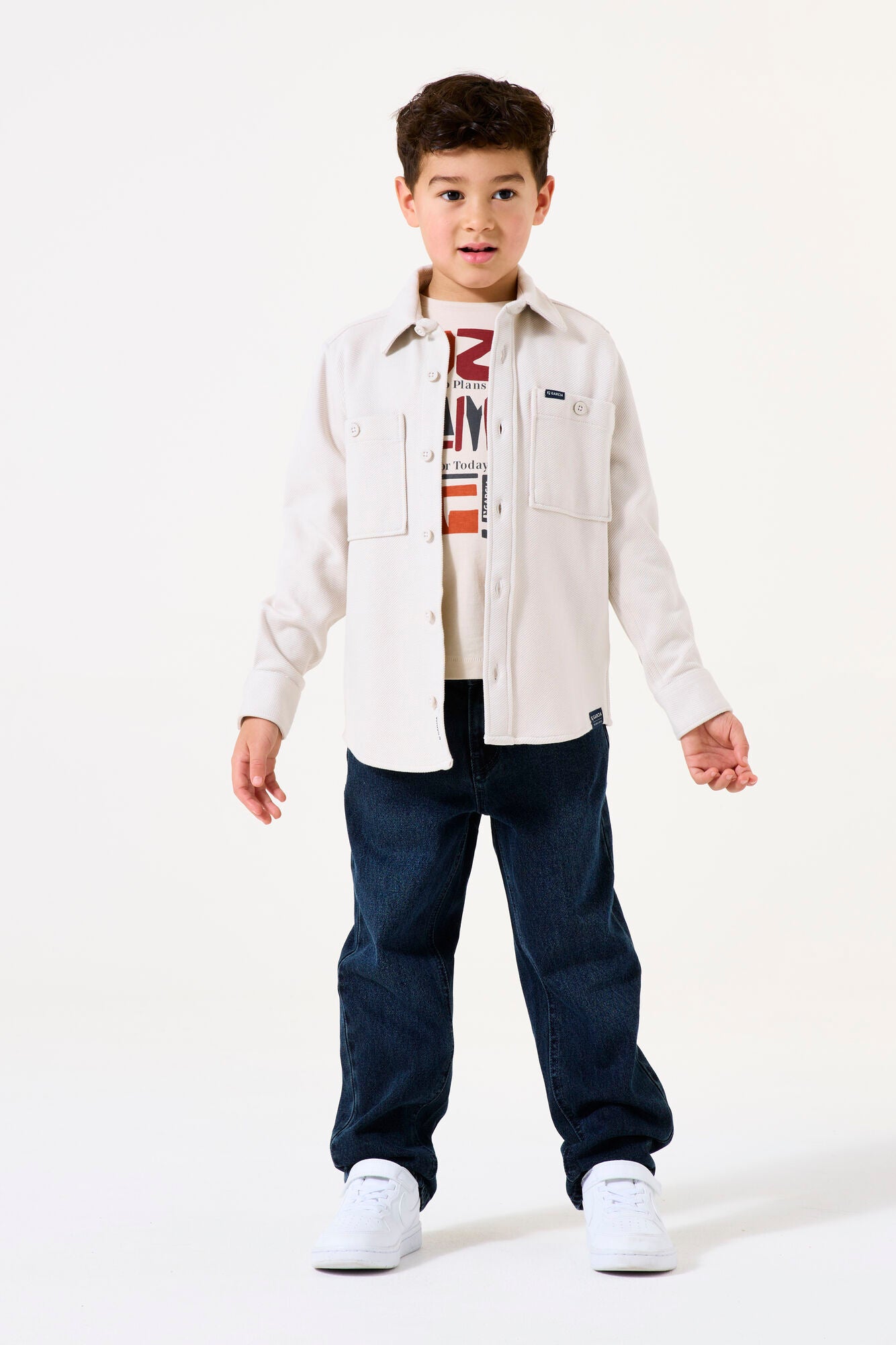 Calça de ganga elegante com pernas largas. Esta calça de ganga possui fecho de correr, cós ajustável, cintura regular e pernas afuniladas para um look contemporâneo. Esta peça é fabricada em 100% algodão.