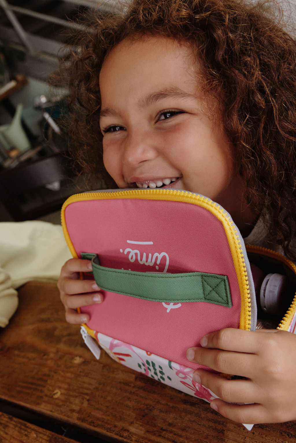 Prático, leve, isolante, flexível, à prova d'água, com bolso para guardar...A Bolsa de Lanche com Arte Floral para bebês e crianças os acompanhará em todos os lugares. Bolsa de lanche colorida infantil, bolsa de lanche estampada infantil, adquira a sua hoje mesmo!