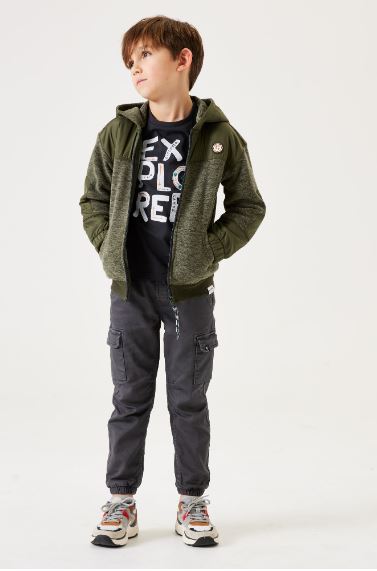 Uma escolha confortável e moderna para o outono. O cardigã tem mangas compridas, zíper e corte nos ombros caídos.