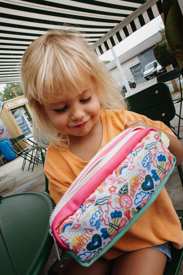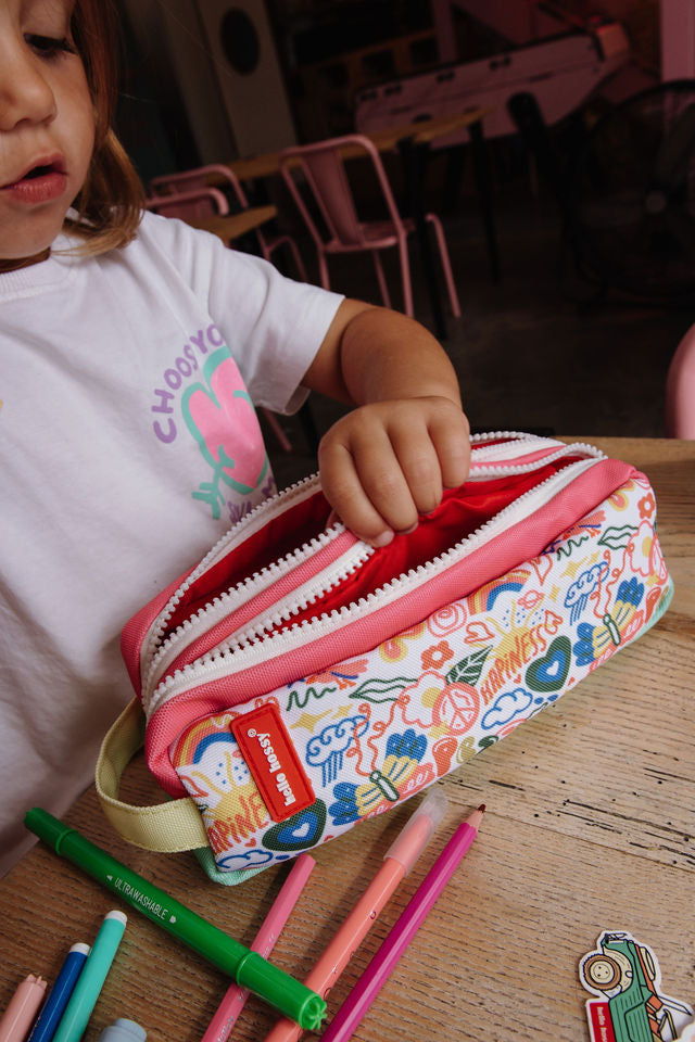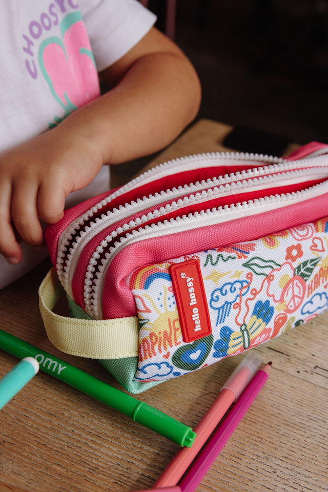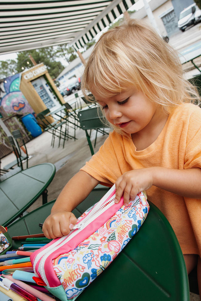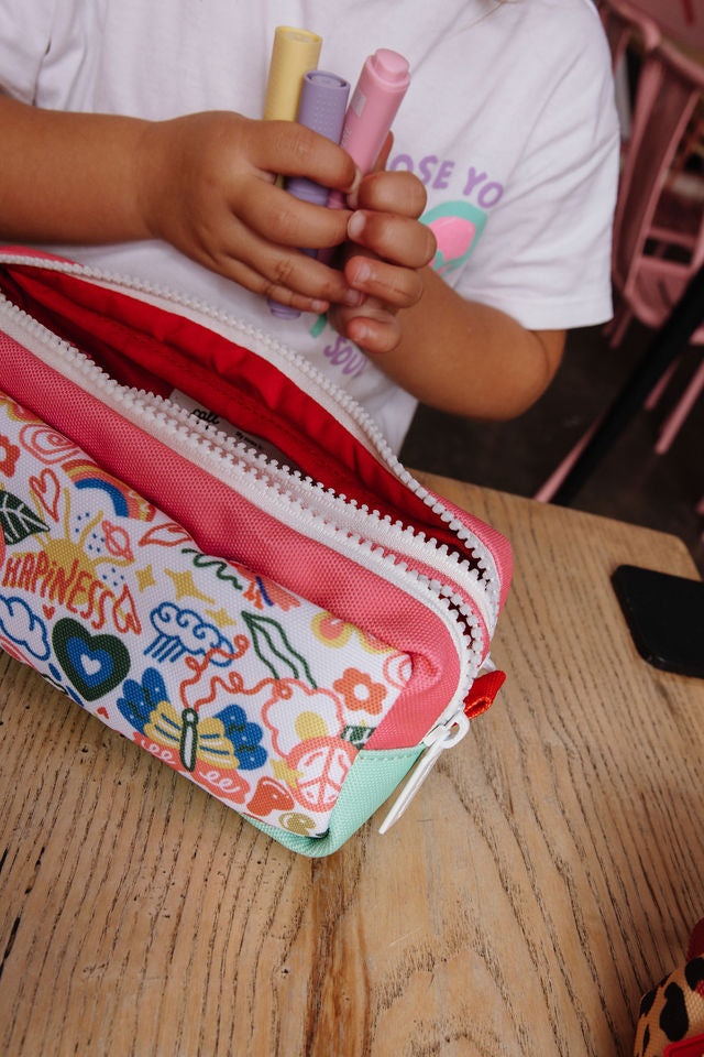 Estojo infantil Happiness é um destaque da nossa coleção de estojos com compartimento duplo. Do tamanho ideal, perfeito para a escola e turmas grandes, com certeza encontrará um lugar nas mochilas escolares ;). Eles vão levar até nas férias!