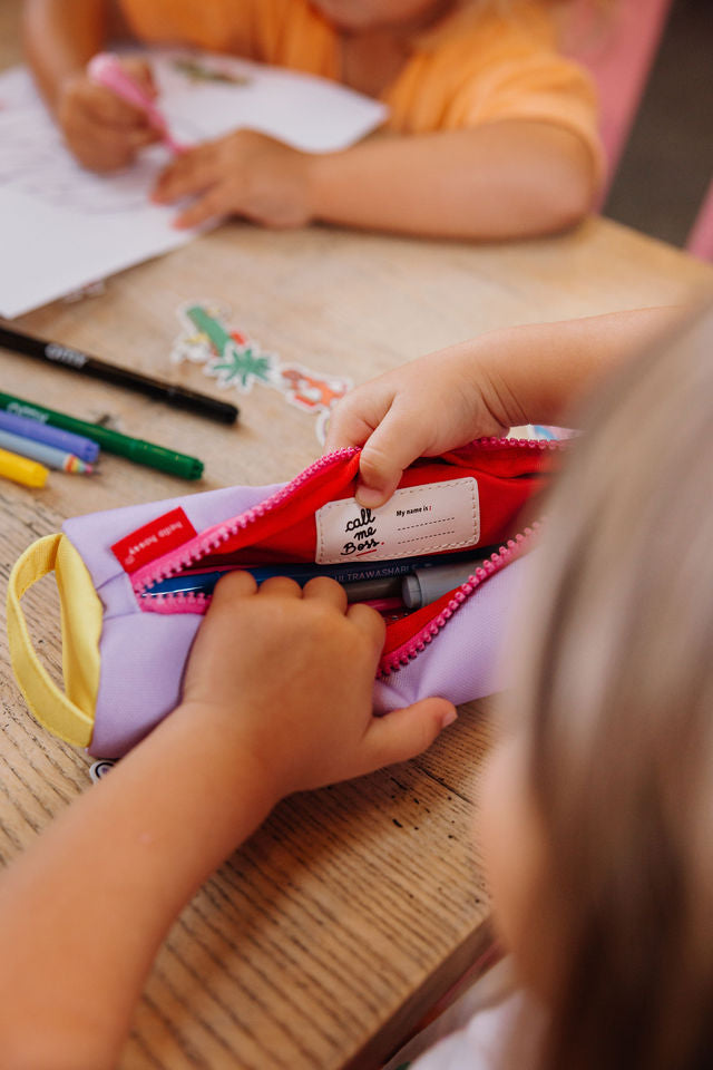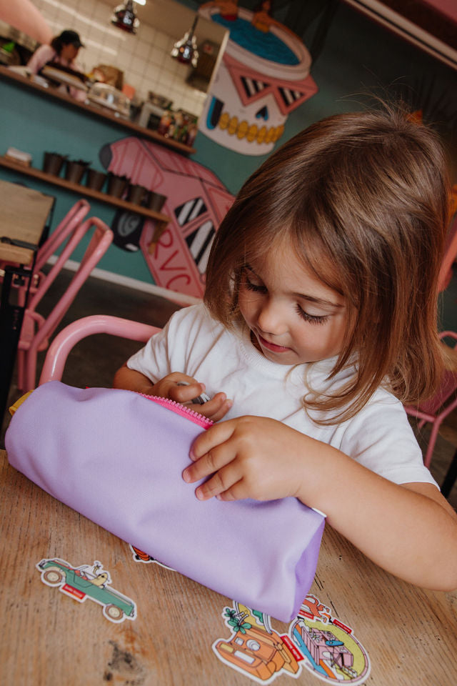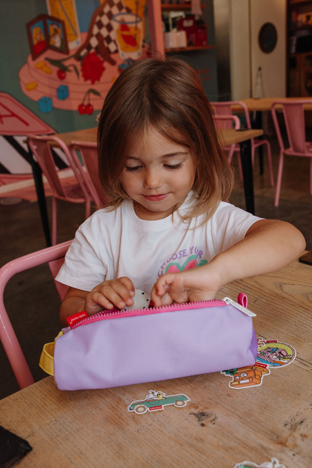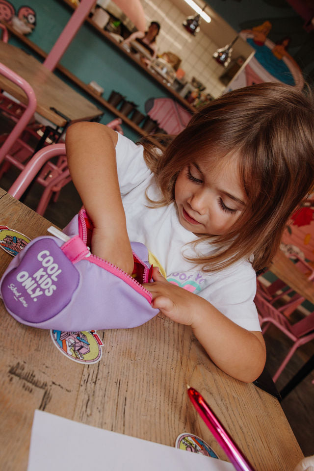 Mini Estojo Mauve para crianças que certamente colocará um sorriso nas suas caras. Compartimento único, perfeito para o jardim de infância e o ensino fundamental, leve, à prova d'água, resistente, com certeza será o favorito deles por muitos anos 🌸