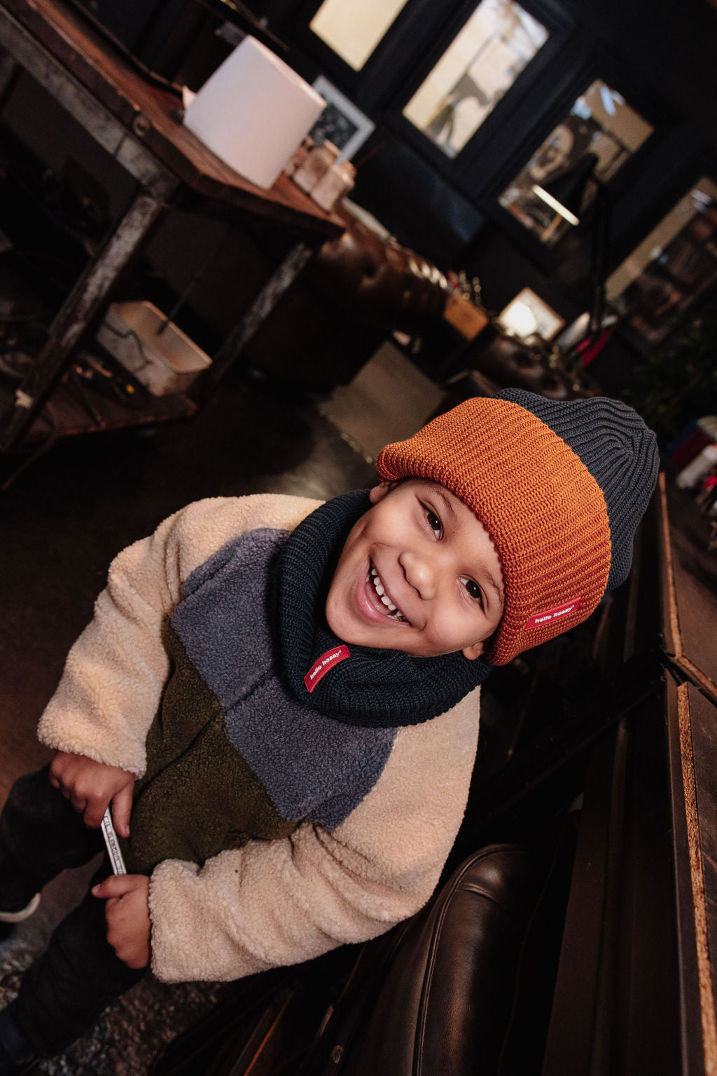 Combina com as luvas e gorros. As mesmas cores, a mesma malha, em algodão orgânico, a combinação perfeita para as crianças no frio!